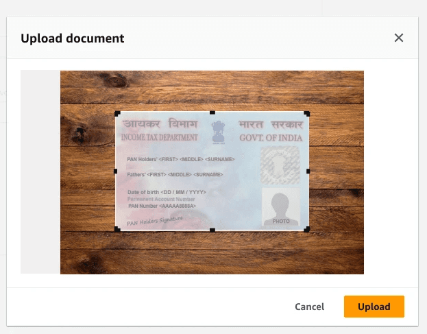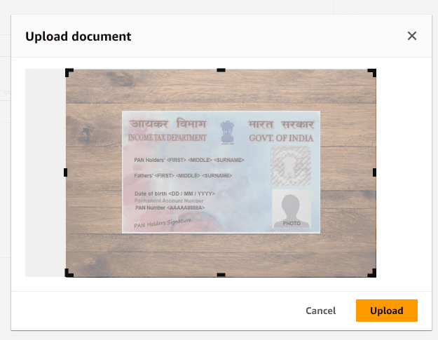After thorough discovery and design phases, we implemented a comprehensive document verification system that streamlined how both new and existing India-based customers interact with AWS's verification requirements. The solution integrates intelligent document type recognition, secure storage protocols, and automated verification processes while adhering to AWS's tight security standards. By thoughtfully extending the existing AWS onboarding pattern, we introduced a new crop component to the Cloudscape design system, ensuring consistent user experience across the platform.