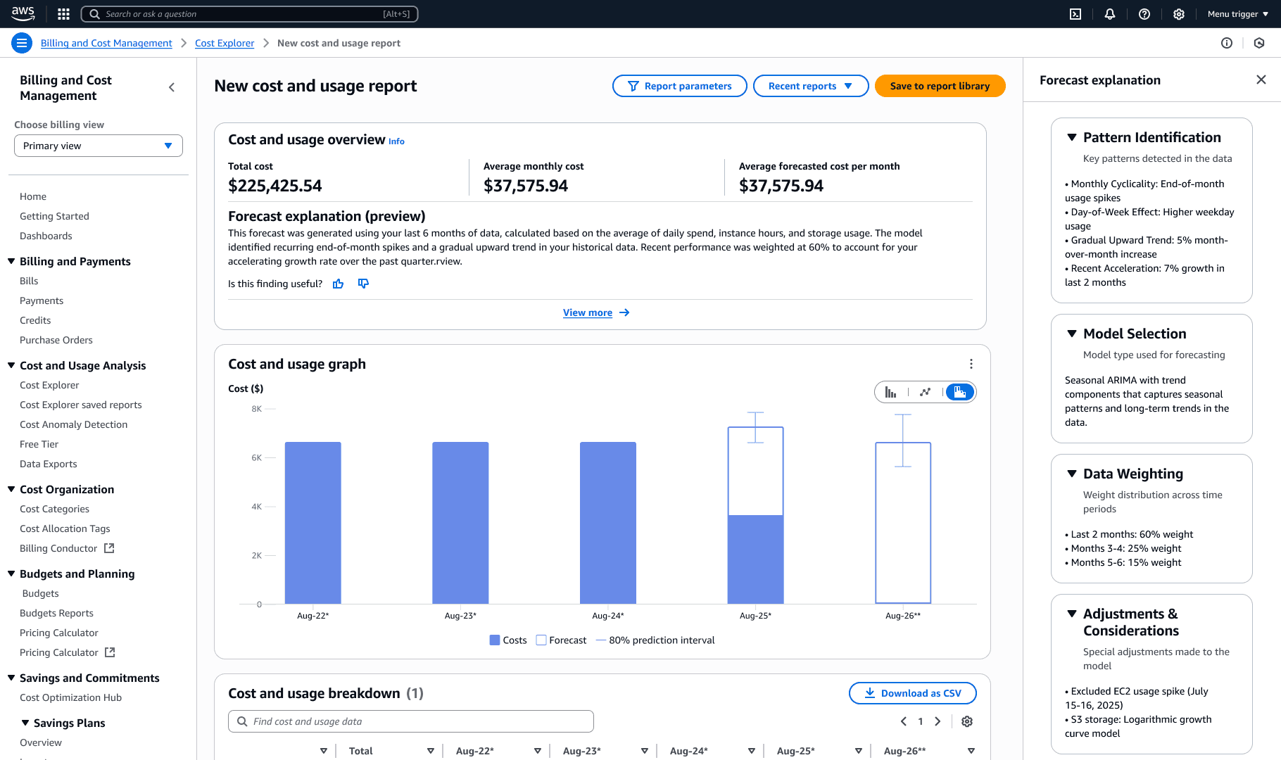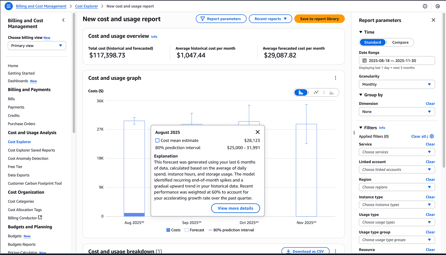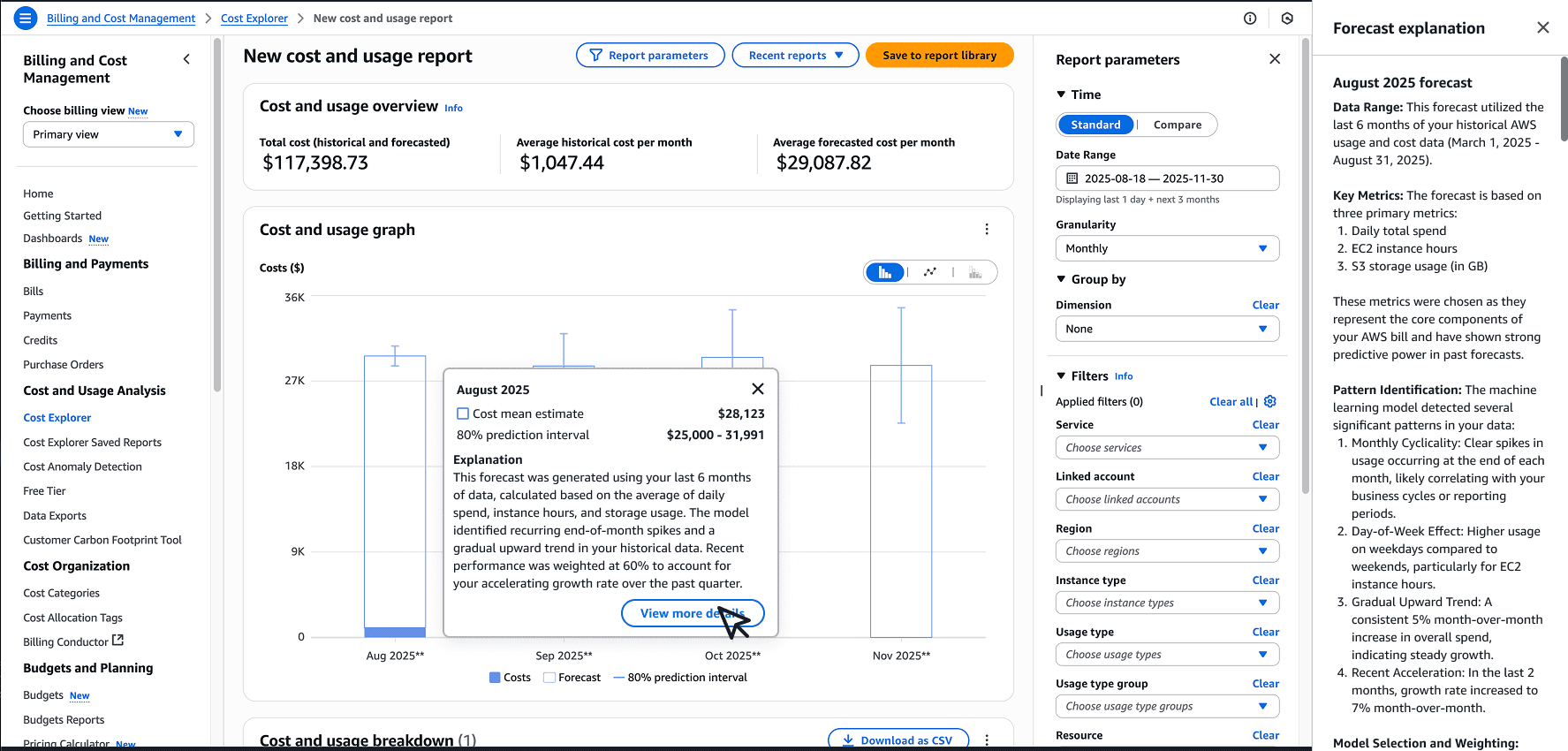 AWS Cost Explorer: Explainable Forecasts