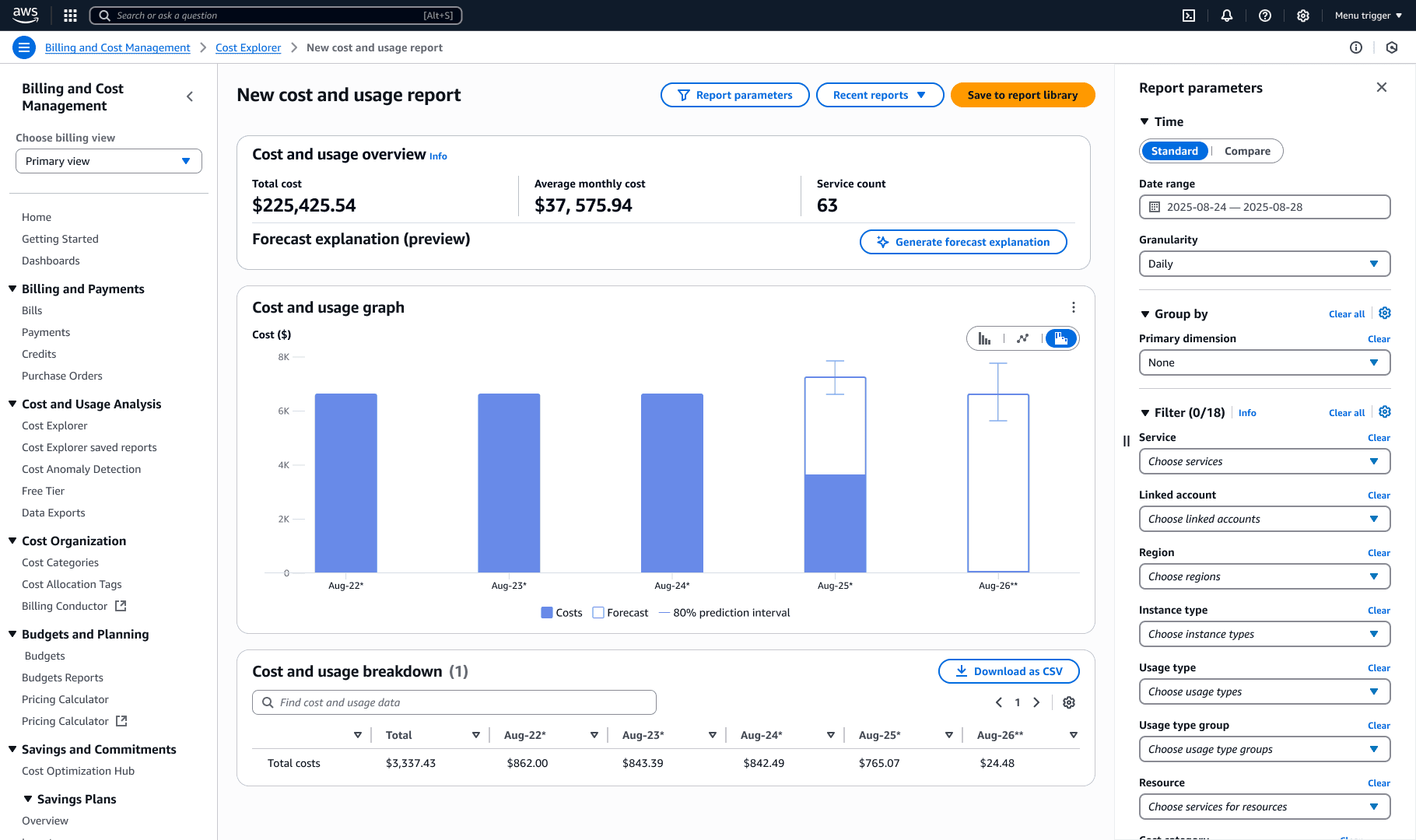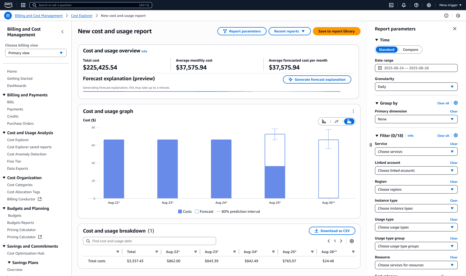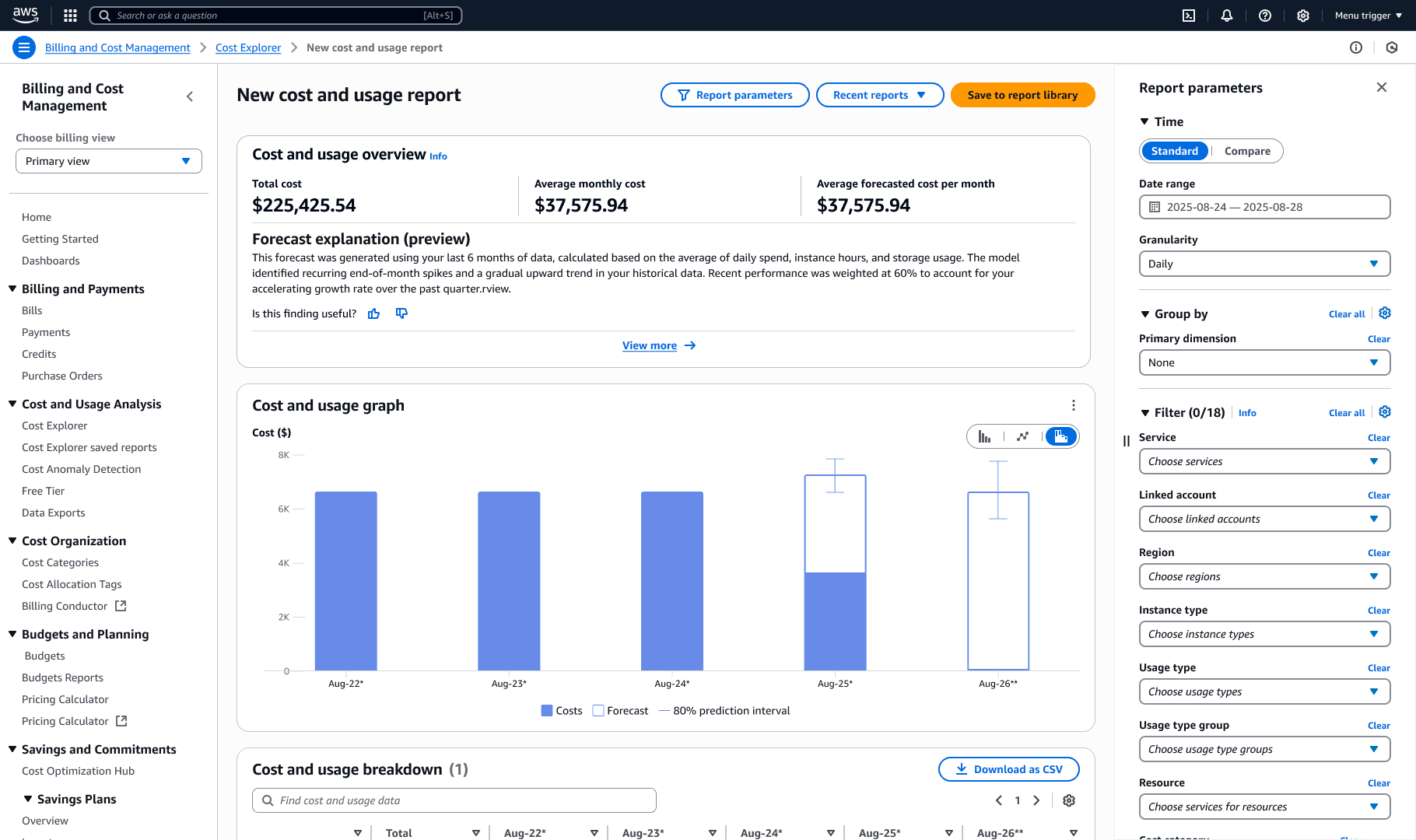 AWS Cost Explorer: Explainable Forecasts