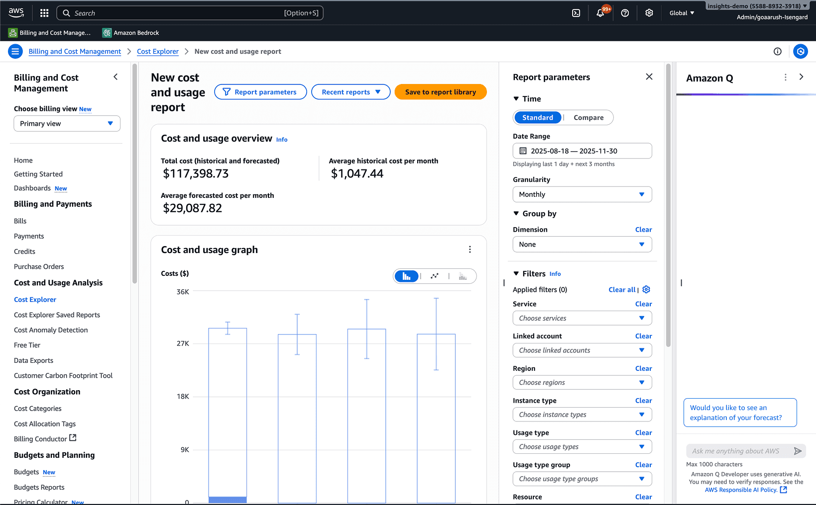 I initially started with Amazon Q integration. This seemed like a quick solution to the design problem, enabling customers to simply ask Q why their forecast looks the way it does, and it would produce an explanation.